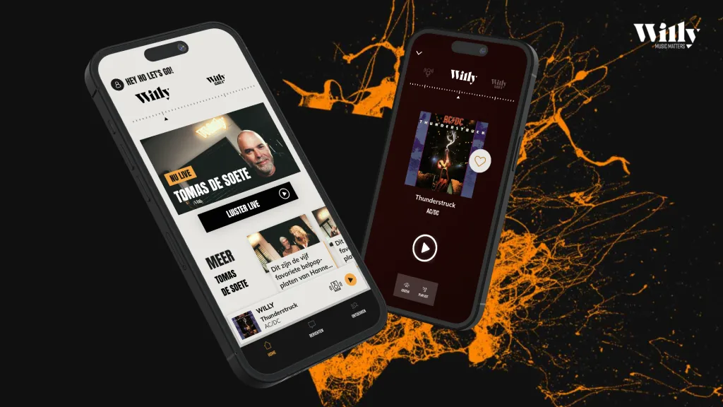 In de app kan je berichten sturen naar de studio, deelnemen aan wedstrijden en je favoriete Willy-songs vanuit de app toevoegen aan je eigen Spotify of Apple Music playlists. Ook kan je eenvoudig vanuit de Willy-app streamen via Bluetooth, Apple Airplay en Google Chromecast.